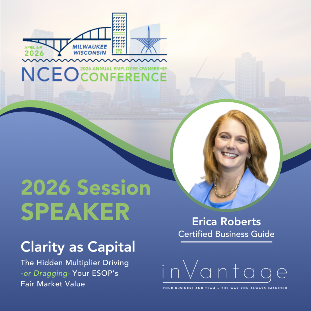 inVantage is proud to announce that Erica Roberts, Certified Business Guide, will be a featured session speaker at the 2026 National Center for Employee Ownership (NCEO) Annual Conference in Milwaukee, Wisconsin.